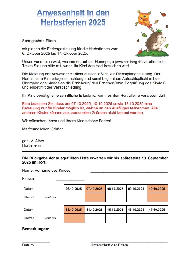 KOMMENDE SCHLIESSZEITEN UNSERER EINRICHTUNG